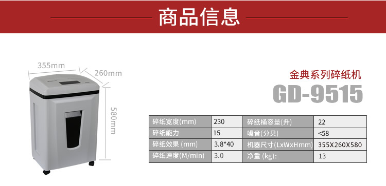 当前位置:首页 > 通用办公设备-其他办公设备-碎纸机 > 山西金典办公碎纸机GD-9515