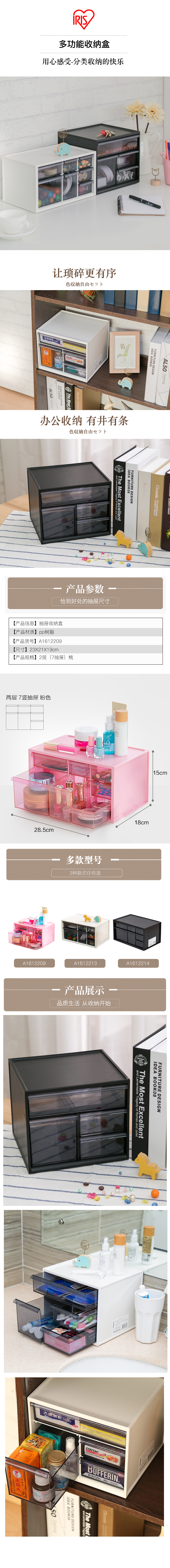 爱丽思抽屉式组合桌面办公用品收纳盒280r桃A1612209 6个装