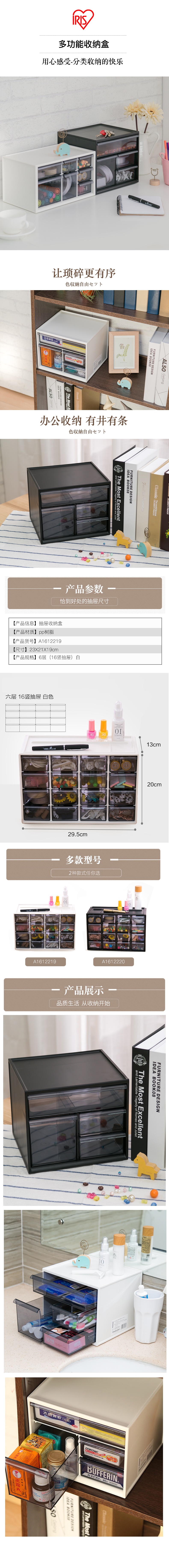 爱丽思抽屉式组合桌面办公用品收纳盒30r白A1612219 6个装