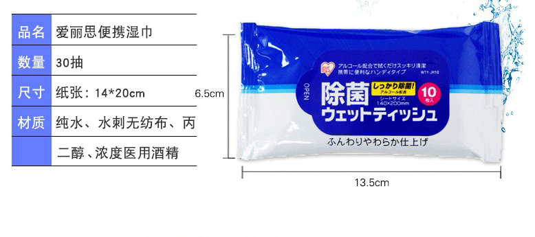 爱丽思便携装湿巾30枚入WTYJH310&& 2个装