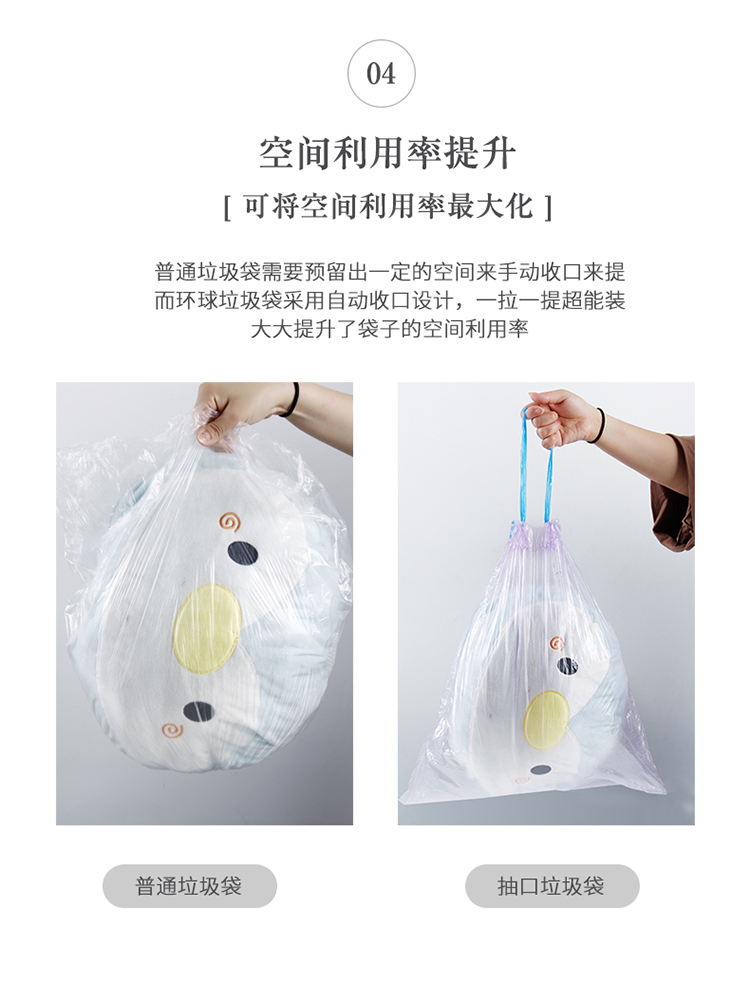 TO-PLAN穿绳收口手提垃圾袋45*50cm(颜色随机)-18个/卷*5卷