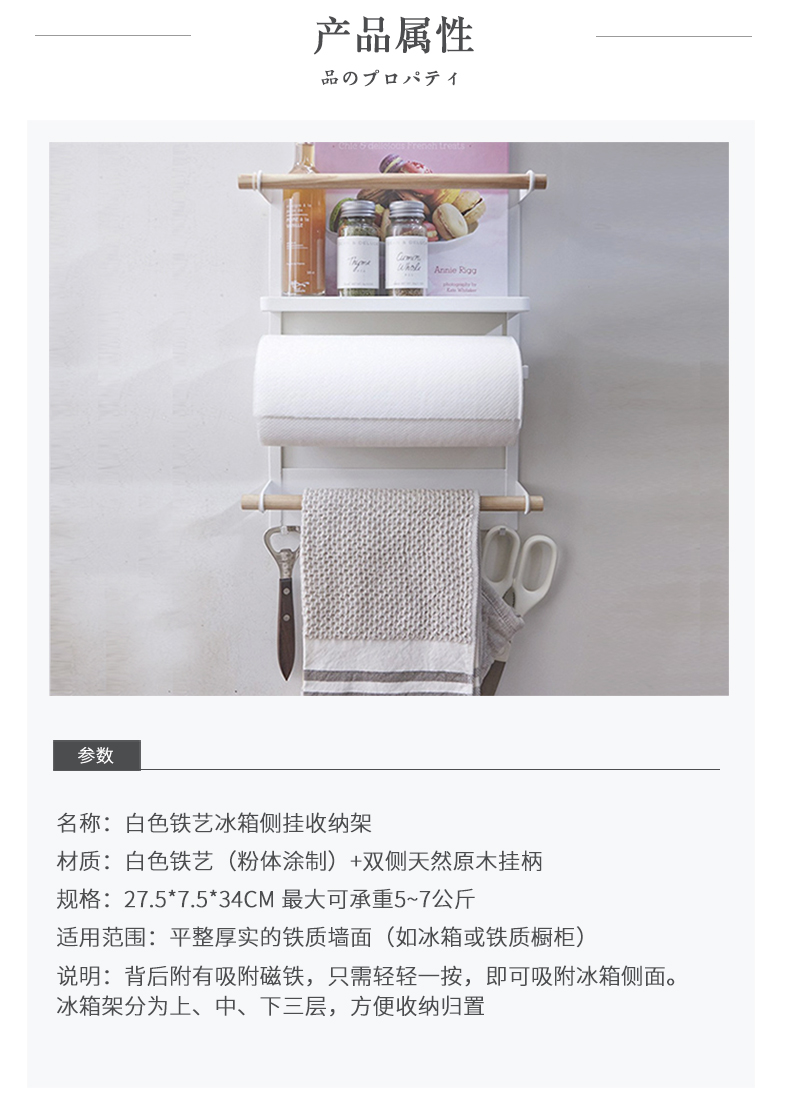 TO-PLAN冰箱铁艺架磁铁吸附-白色