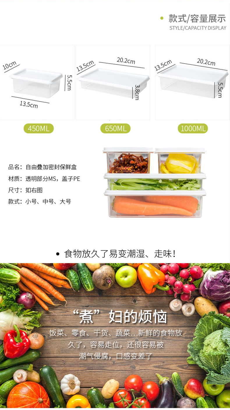 TO-PLAN长方形冰箱塑料储物盒透明小号两个装