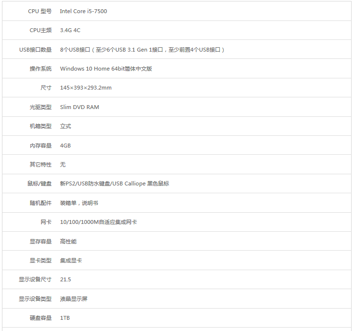 当前位置:首页 > 内蒙品目-计算机及周边设备-计算机设备-台式计算机 > 〔内蒙库存〕台式计算机 联想启天M410( I5-7500/4G/1T/21.5)