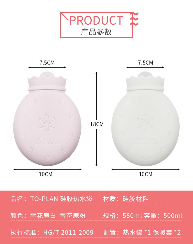 当前位置:首页 > 建材布草-建筑材料-劳保(防)用品 > TO-PLAN雪花鹿硅胶热水袋580ml-白色 冷热两用 微波加热