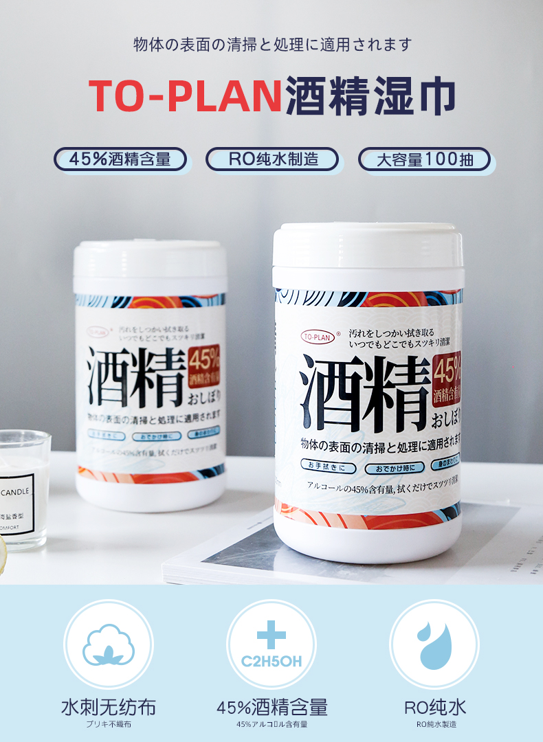 45%酒精湿巾100抽*3桶马桶手机一次性成人清洁杀菌消毒卫生湿纸巾