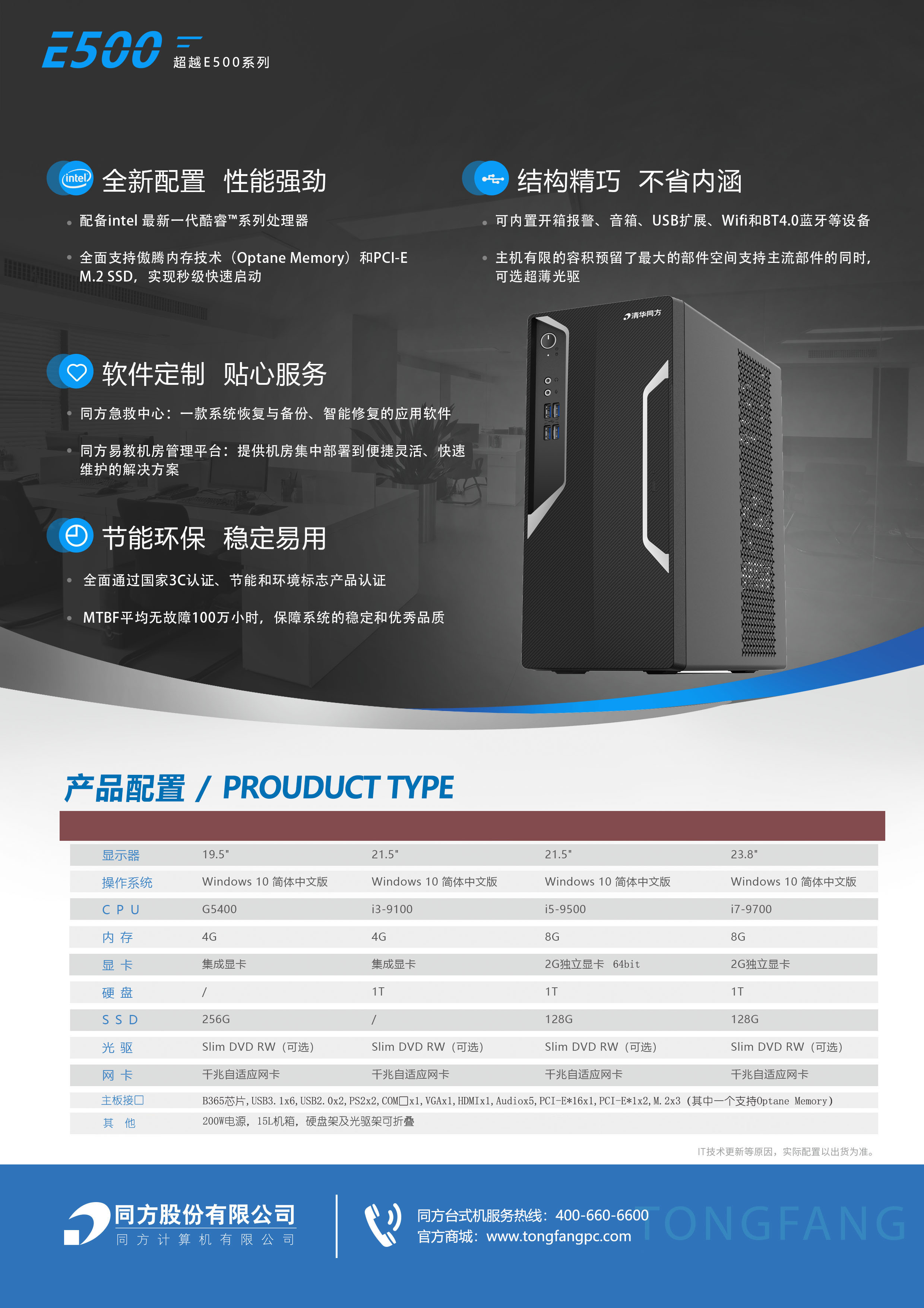 【内蒙库存】清华同方 超越E500-82487 I5-9600 6核心 3.1主频 内存8G 硬盘总容量1128