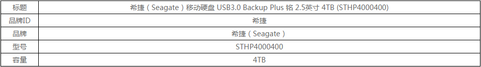 当前位置:首页 > 通用办公设备-计算机配件-移动硬盘 > 希捷(Seagate)移动硬盘 USB3.0 Backup Plus 铭 2.5英寸 4TB (STHP4000400)