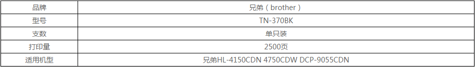 兄弟 brother TN-370BK 黑色墨粉 (适用于4150/4570/9055CDN/9465CDN打印机)