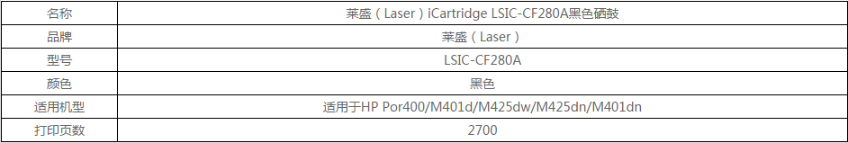莱盛(Laser)iCartridge LSIC-CF280A黑色硒鼓(适用于HP Por400/M401d/M425dw/M425dn/M401dn)