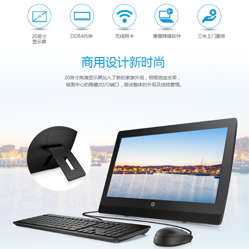 i5-7500T(2.7G/6M/4核)/4G(1*4G DDR4 2400)/500G(2.5”,SATA)/超薄SuperMulti DVDRW FDD/Windows 10 Home 64位/USB键盘/USB Optical鼠标/100万像素 摄像头(附带隐私挡片)/内置麦克风/内置商业级音响/内置蓝牙4.0/90W 89%高效节能电源/4*USB3.1 Gen 1/ 2*USB2.0/20" 宽屏LED背光防眩光液晶显示器/3-3-3/标配/内置Intel 3168 802.11 AC无线网卡带蓝牙/相框式底座