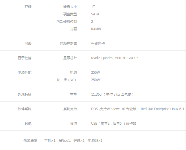 型       号: P320 E3-1230V6/8G ECC/1TB/P600/RAMBO/DOS