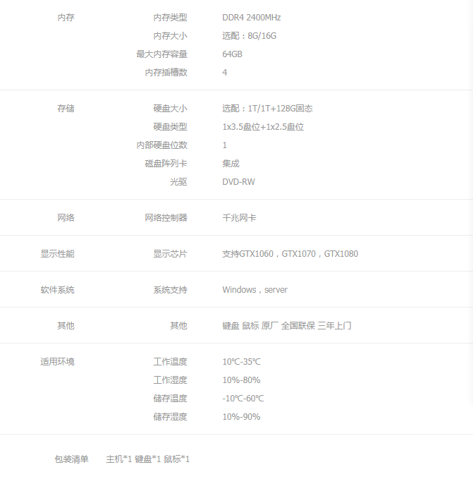 联想 台式工作站 P318 I7-6700 8G NECC 1TB GTX1080(8GB) Rambo Dos 400W