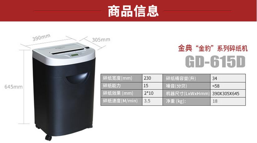 当前位置:首页 > 通用办公设备-其他办公设备-碎纸机 > 山西金典保密认证碎纸机GD-615D