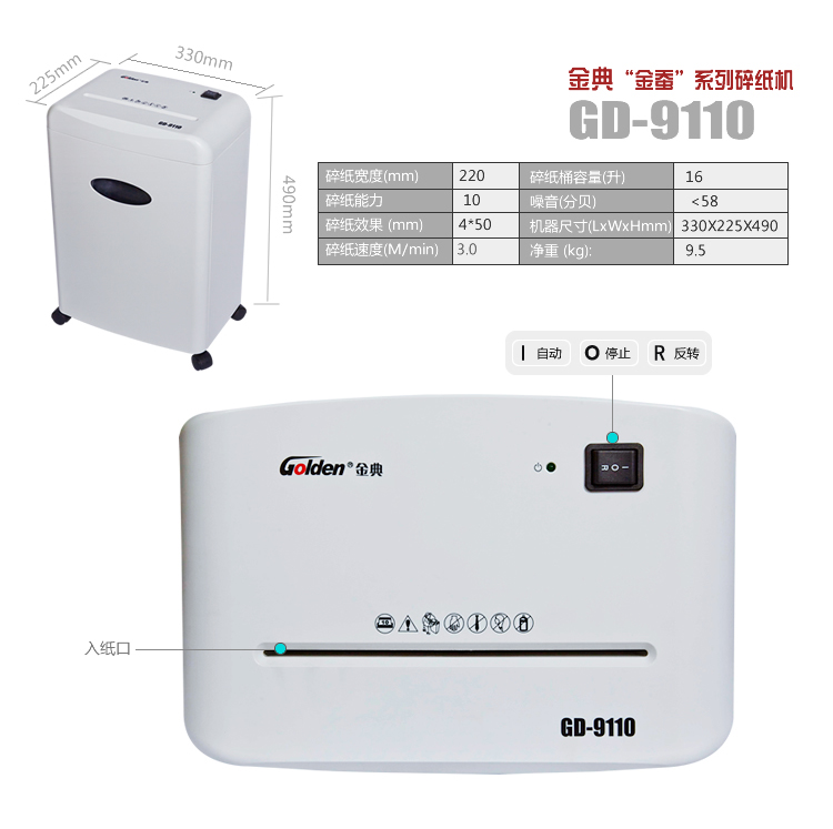 当前位置:首页 > 通用办公设备-其他办公设备-碎纸机 > 山西金典办公碎纸机GD-9110