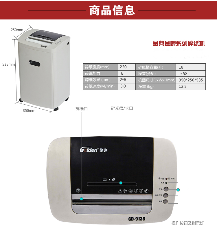 山西金典办公碎纸机GD-9136