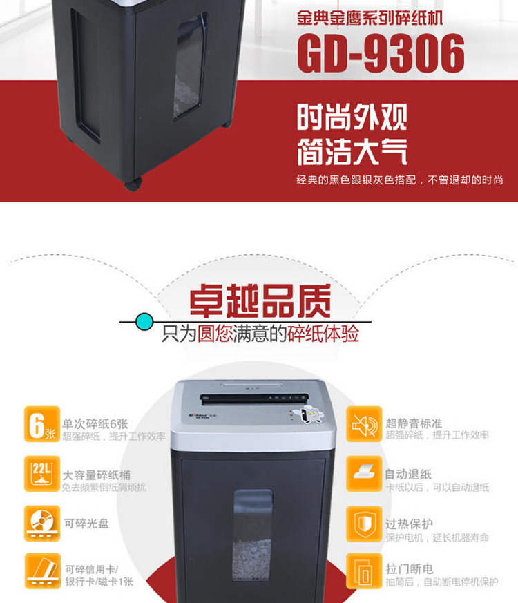 当前位置:首页 > 通用办公设备-其他办公设备-碎纸机 > 山西金典办公碎纸机GD-9306