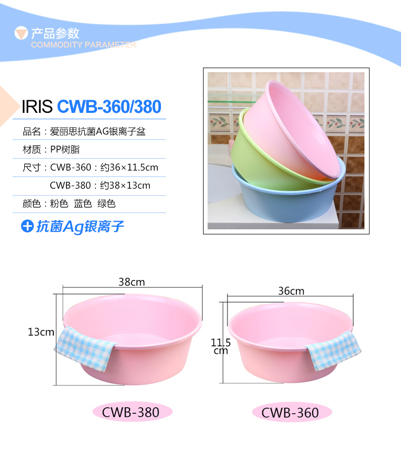 爱丽思彩色脸盆CWB-360绿*10个