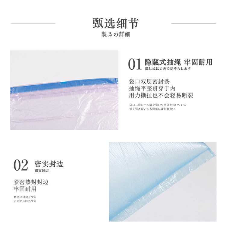 当前位置:首页 > 办公及体育用品用品-清洁用品-清洁工具 > TO-PLAN穿绳收口手提垃圾袋45*50cm(颜色随机)-18个/卷*5卷