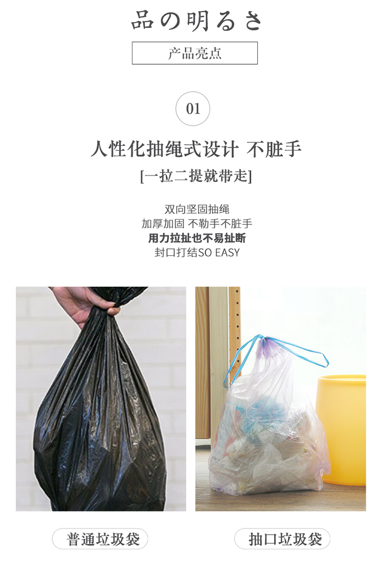 TO-PLAN穿绳收口手提垃圾袋45*50cm(颜色随机)-18个/卷*5卷