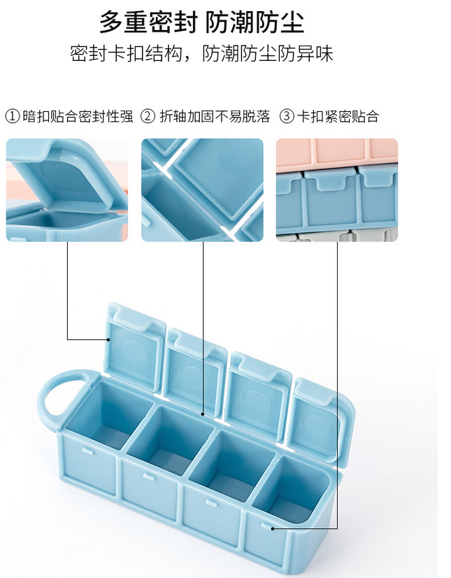 to-plan带卡扣可悬挂密封分类随身便携药盒-浅灰色5个装