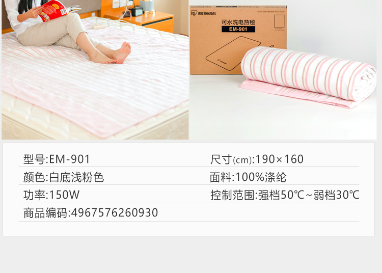 当前位置:首页 > 建材布草-布草-电热毯 > 日本爱丽思IRIS 可水洗可除湿家用宿舍用电热毯单人双人(中号)