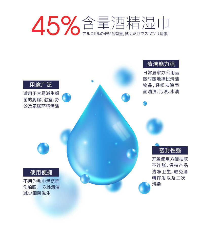 45%酒精湿巾100抽*3桶马桶手机一次性成人清洁杀菌消毒卫生湿纸巾