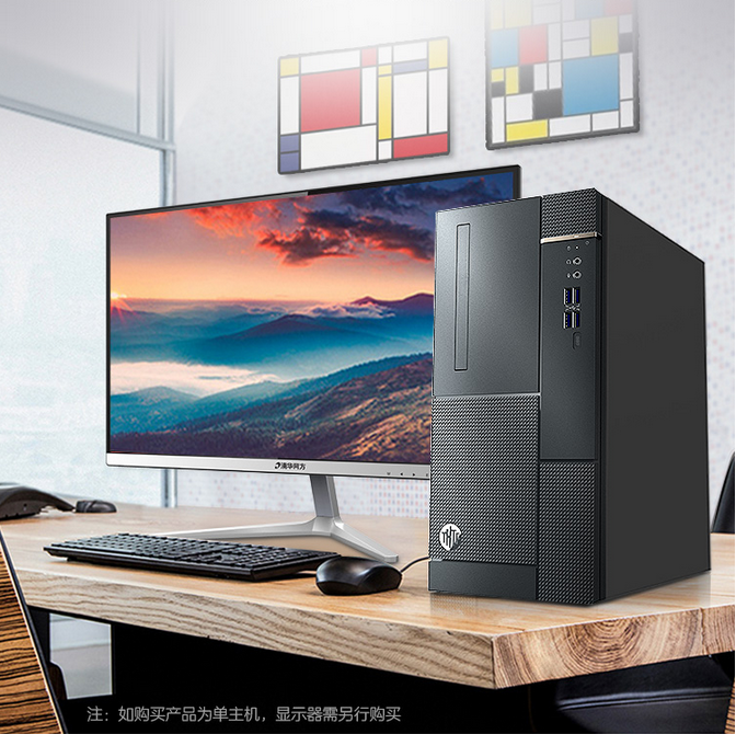 【内蒙库存】清华同方(THTF)超越E500-100468 商用台式机 超越E500-100468 I5-10400 2.9GHz 65W 8+256G SSD 独立显卡 Windows 10 23.8显示器