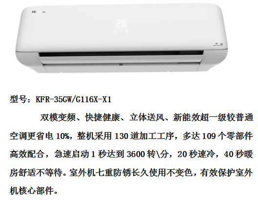 当前位置:首页 > 强制节能产品-电器-壁挂式空调 > 海信(HISENSE)KFR-35GW/G116X-X1 壁挂空调 1.5匹挂机