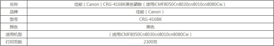 佳能(Canon)CRG-416BK黑色硒鼓2300页(适用iCMF8050Cn8030cn8010cn8080Cw)