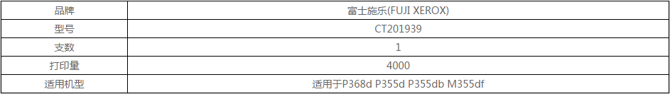 富士施乐(FujiXerox)CT201939 黑色打印机标容粉盒 适用于P368d P355d P355db M355df 打印量4000页