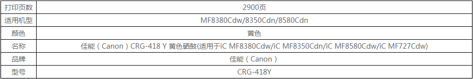 佳能(Canon)CRG-418 Y 黄色硒鼓(适用于iC MF8380Cdw/iC MF8350Cdn/iC MF8580Cdw/iC MF727Cdw)
