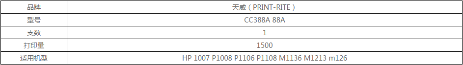 当前位置:首页 > 办公耗材-办公耗材-碳粉 > 天威(PRINT-RITE) 88A 388A 适用惠普 HP 1106 P1108 M202n M1136 M1213 M128